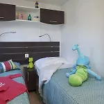 Algunas habitaciones del Camping Villaggio L'Ultima Spiaggia disponen de sofá, Wi-Fi y climatizador. Están equipadas con una decoración tradicional.